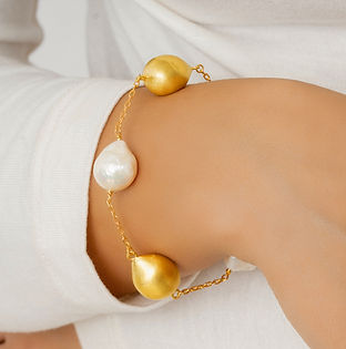 Pearls and Gold are simply a match made in heaven! We have custom made beads of Gold at the exact same shape of Pearls and nicely harmonized both together.